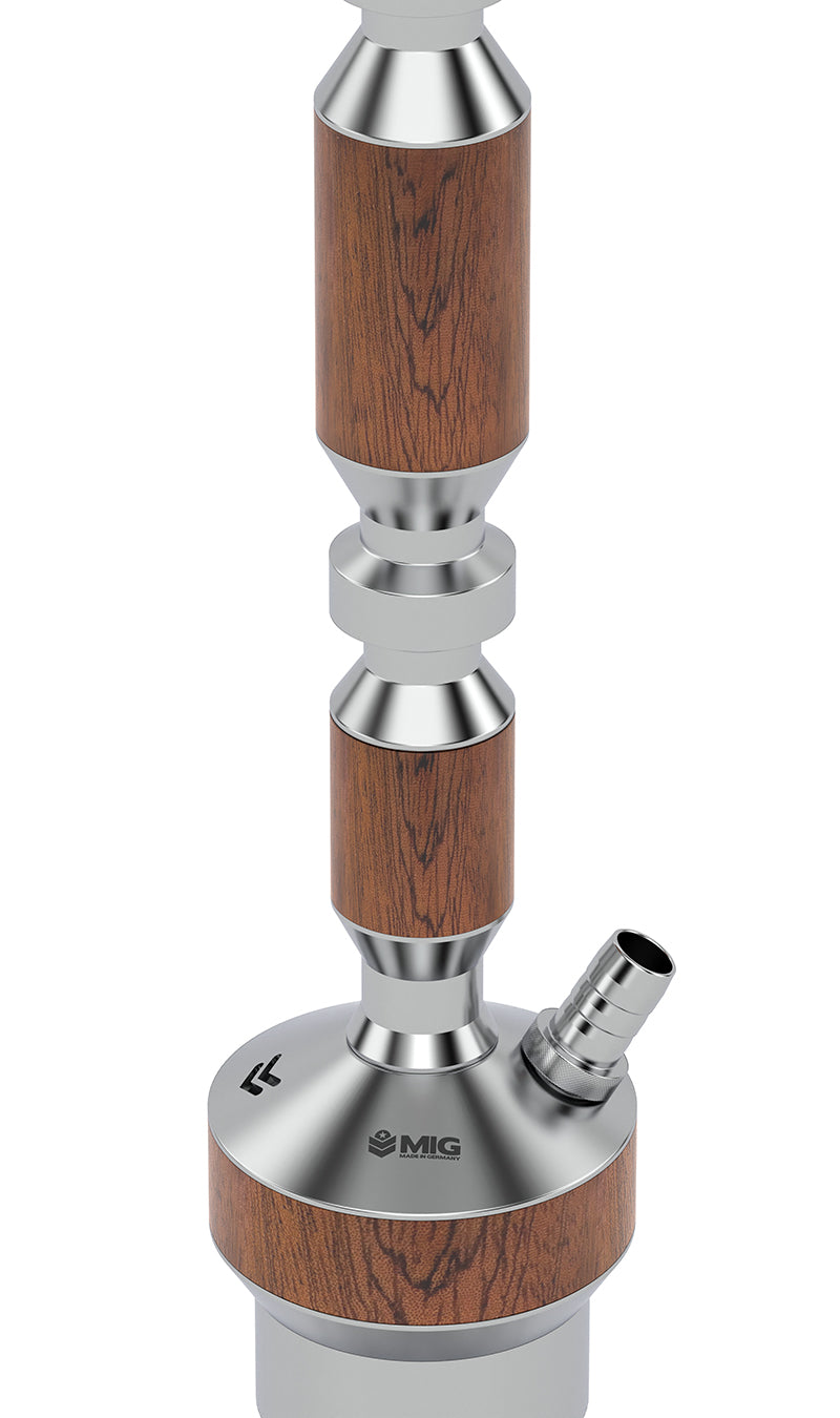 The highlight of the MIG 4.0 PLUS lies in its exclusive wooden elements. These not only captivate with their natural beauty but are also interchangeable, allowing you to customize your hookah to your exact preferences. Choose from a selection of premium wood types and high-quality DLC coatings to create a truly unique masterpiece.