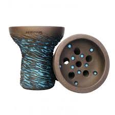 The Kong Turkish Godzilava bowl is made from volcanic stone in a beautiful lava blue color, reminiscent of Godzilla. This model is fired at 1200 degrees Celsius, providing outstanding taste and heat retention. The chillim has five openings, encircled by tiny dots that hold the molasses within. The tighter central opening enables the chillim to warm uniformly, showcasing all the tastes of the tobacco. The capacity for filling is roughly 15-20 grams